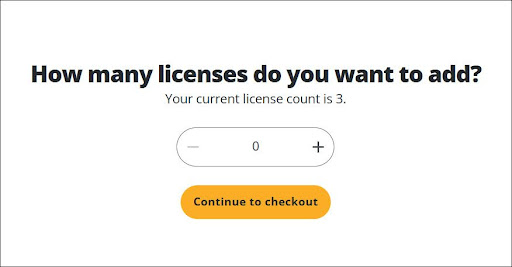 Click Continue to checkout to pay the prorated amount for your new licenses
