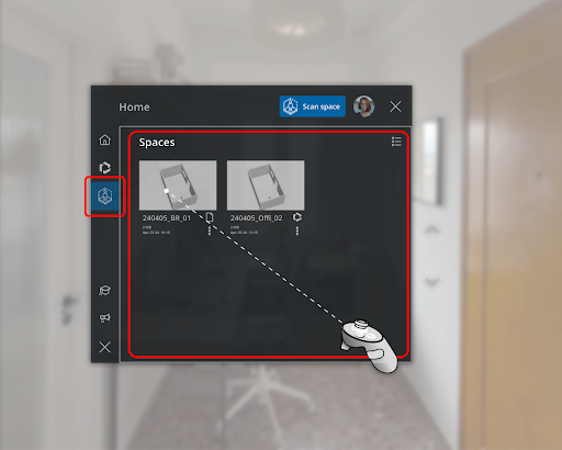 Puoi trovare i modelli scansionati nel visualizzatore SketchUp nella scheda Recent Models (Modelli recenti) o nella scheda Scanned Spaces (Spazi scansionati).