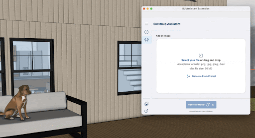 Att använda Generate Object (generera objekt) kostar 30 SketchUp AI-krediter. Krediter dras av från din totalsumma när AI Assistant (AI-assistenten) genererar objektet.